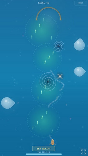 Each level is a still moment on the water — a tiny sailboat, a safe harbor somewhere beyond, and an ocean full of forces that want to push you off course. Study the scene. Trace a few strokes of current with your finger. Release, and watch your plan play out.