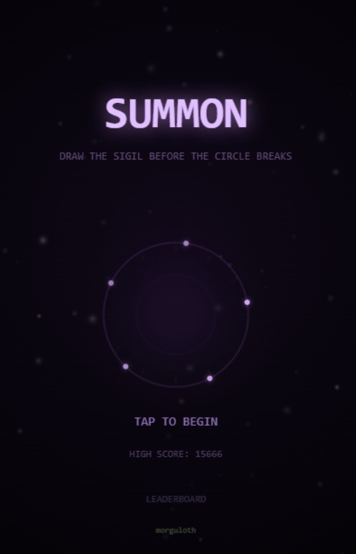 Arcane nodes ignite on a breathing, rotating summoning circle. Study the pattern, then tap the nodes in the exact order to complete the sigil. Each round the circle grows more complex -- it warps, shifts direction, and the nodes themselves begin to wander. How many rounds can you survive before the circle breaks?